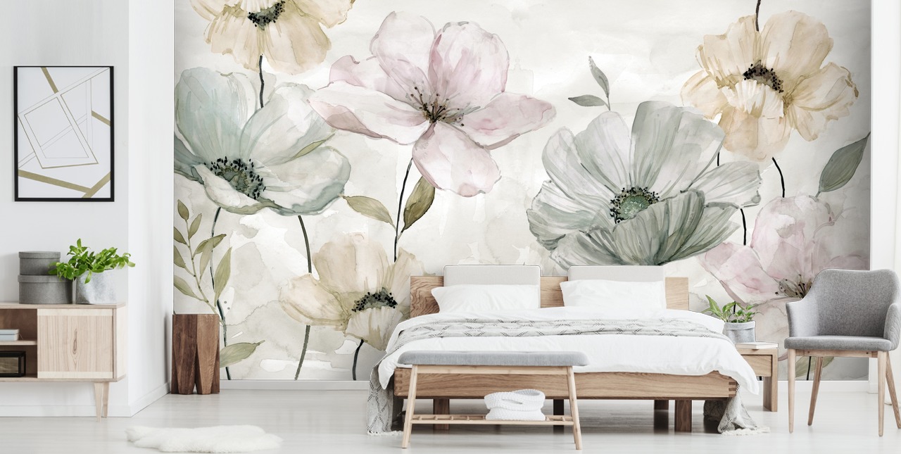 Questa bellissima carta da parati floreale sarà sicuramente fantastica in ogni stanza! Con i suoi colori tenui, quasi pastello, porterà un'atmosfera tranquilla in qualsiasi camera da letto o soggiorno!