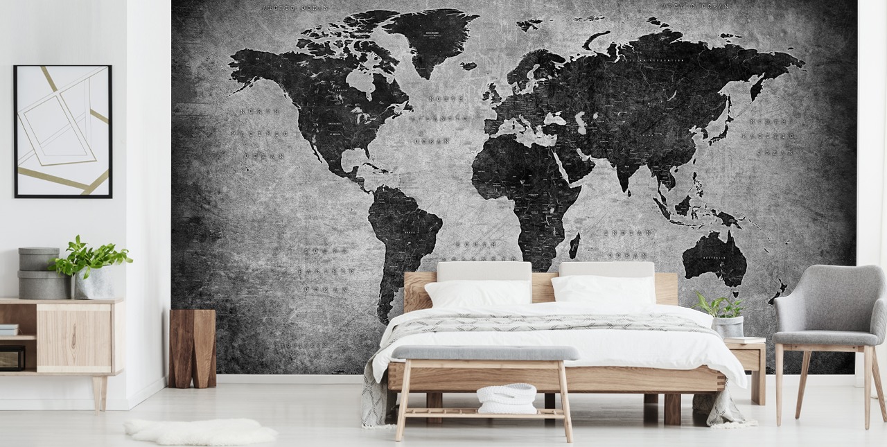 Mappa industriale - Decorazione murale con mappa del mondo grigia