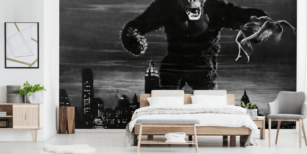 Trasforma una semplice parete in un capolavoro cinematografico con l'iconico murale di carta da parati King Kong di Wallsauce.