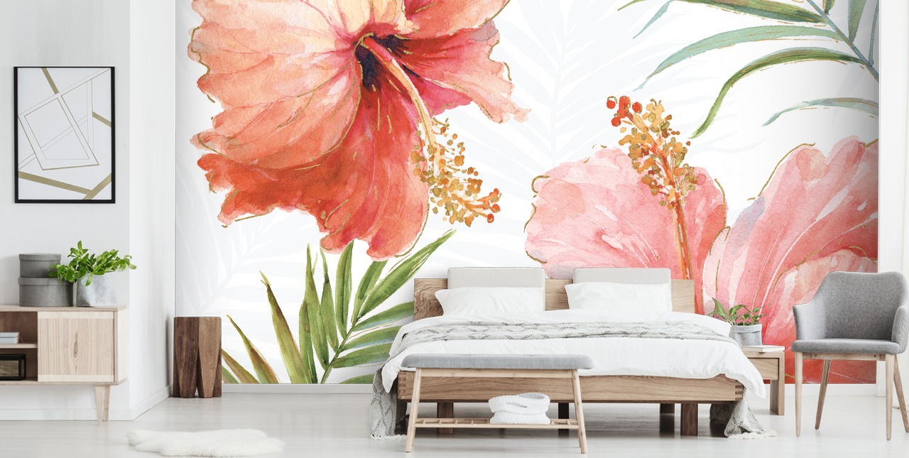 Vivi il fascino dei tropici direttamente nel tuo spazio con il nostro murale botanico Tropical Blush di Lisa Audit.