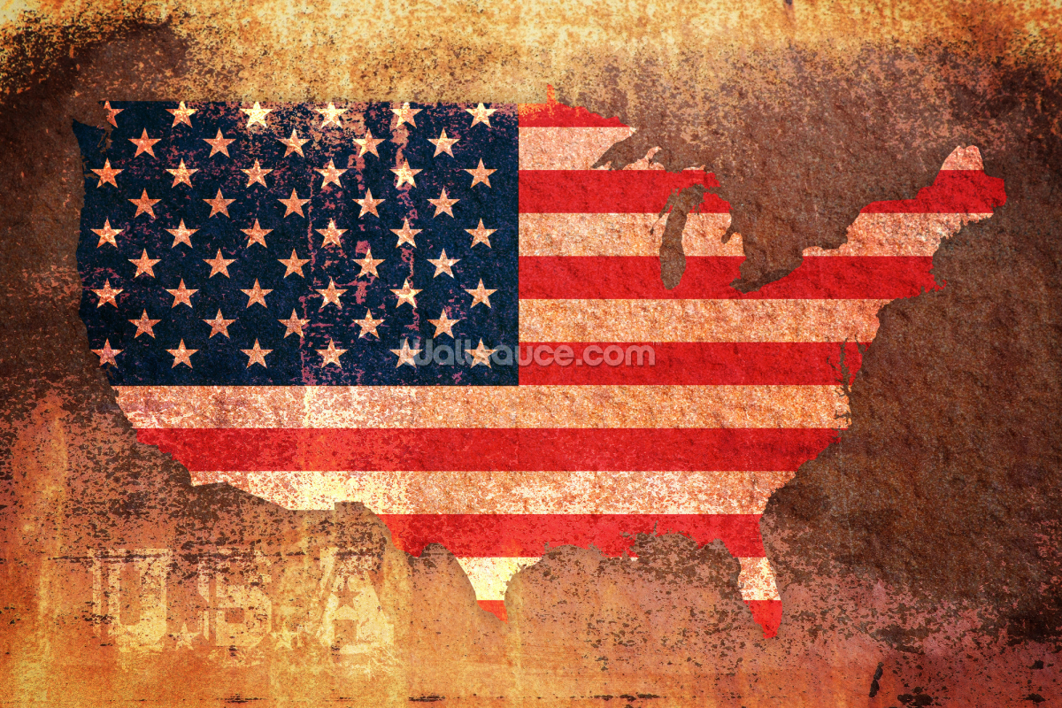 Dai alla tua casa o al tuo spazio di lavoro un aspetto industriale con questo elegante murale di carta da parati USA Flag on Rust di Michael Tompsett.