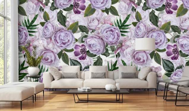 carta da parati con fiori viola e bianco sporco