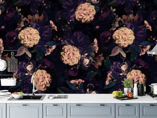 fiori scuri in carta da parati viola e rosa