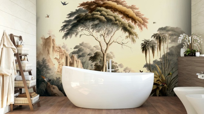 Immergiti nell'incantevole regno della nostra collezione di carte da parati murali Wilderness, un assortimento distintivo di carte da parati su misura progettate per trasformare i tuoi spazi in una fuga serena. La Wilderness Collection è molto più di una semplice carta da parati; è un invito a portare la bellezza seducente e la tranquillità della