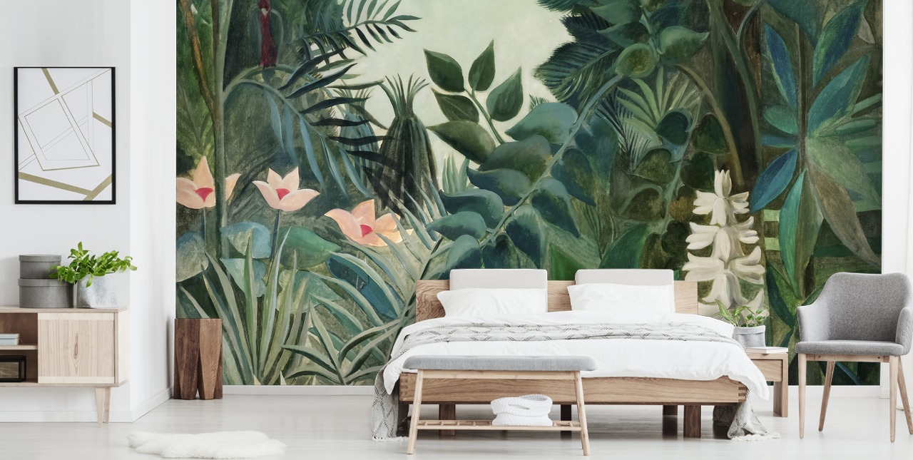 Infondi nella tua casa un'arte senza tempo installando la carta da parati murale The Equatorial Jungle dell'artista Henri Rousseau.