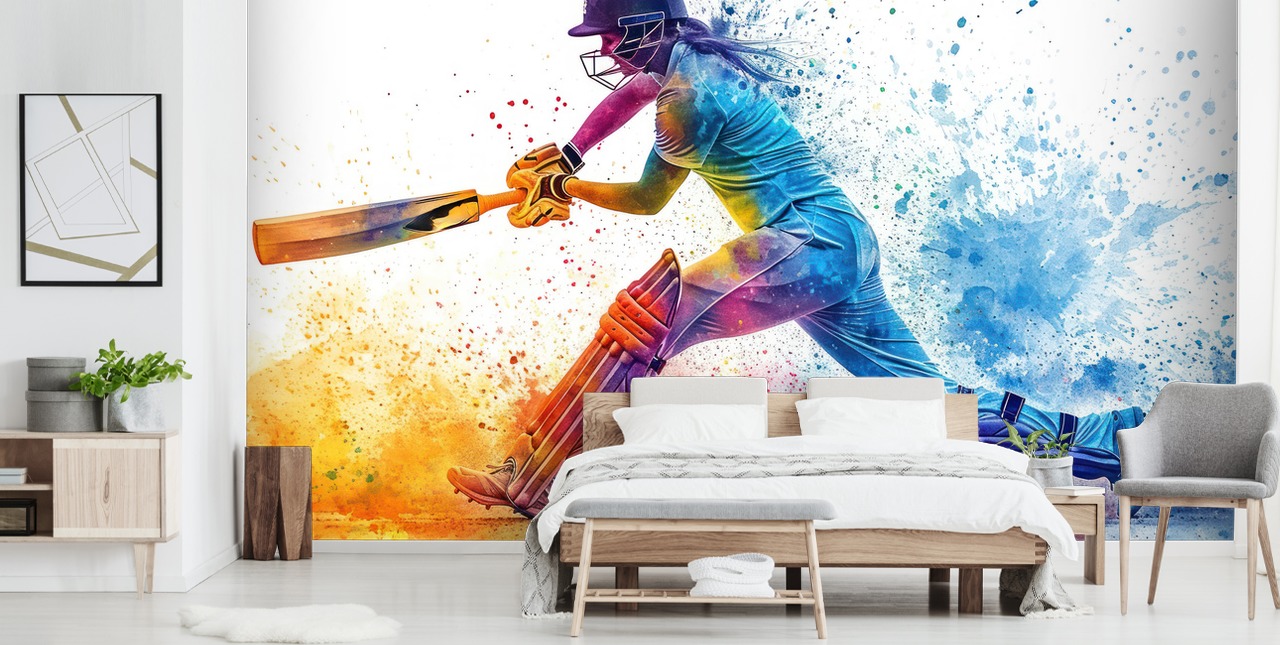 Infondi colore nella cameretta di un bambino pazzo di cricket grazie al bellissimo murale Cricket Paint Splash.