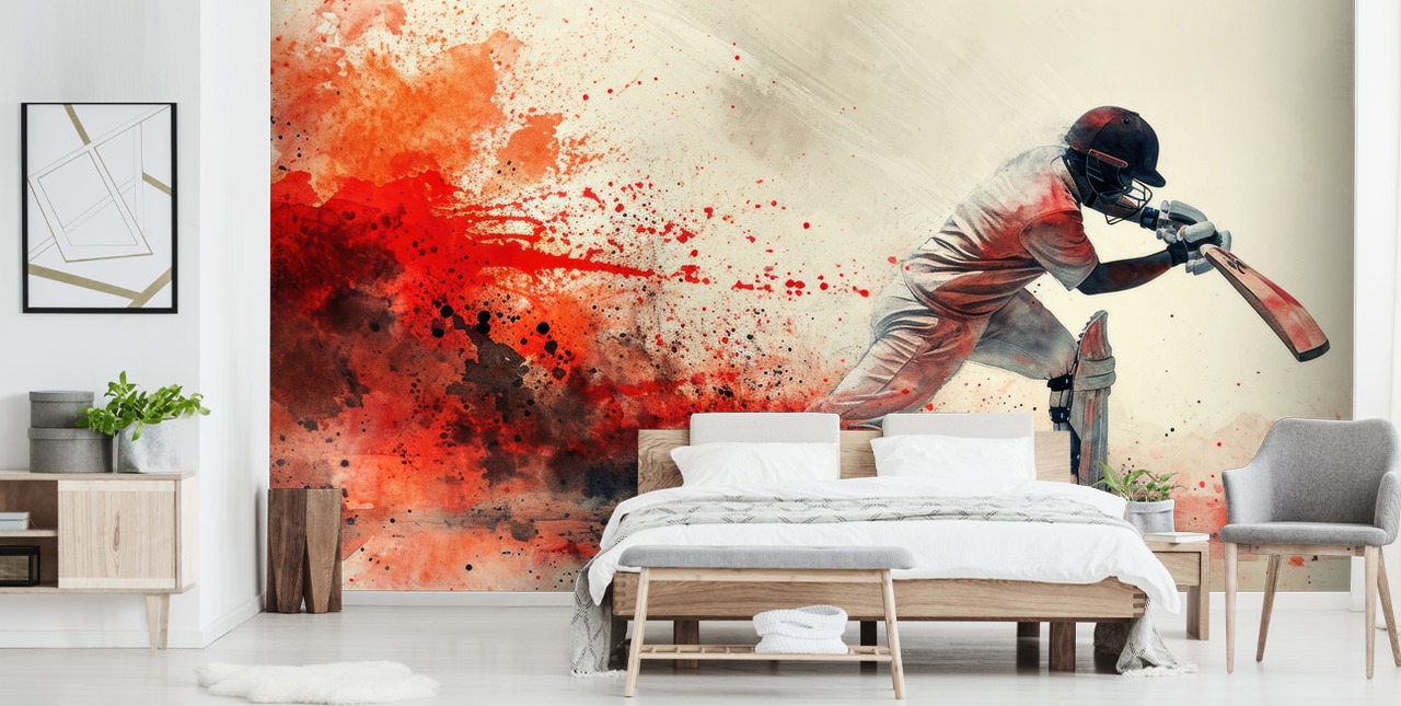 Dai vita a questo audace e bellissimo murale con cricket nella tua casa con la carta da parati Red Watercolour Cricketer.