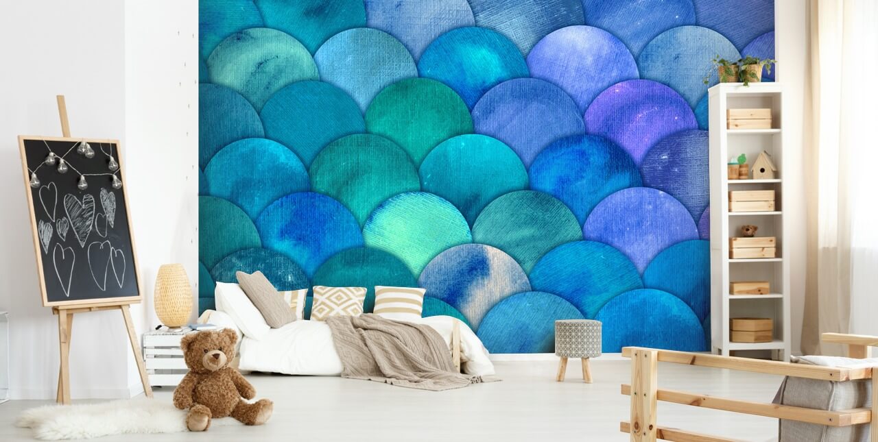 Installate oggi questa carta da parati personalizzata Aqua Blue Mermaid Scales.