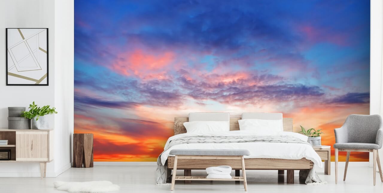 Date un'occhiata a questa incredibile carta da parati Burning Sunset. Un murale del tramonto su misura ricco di colori.