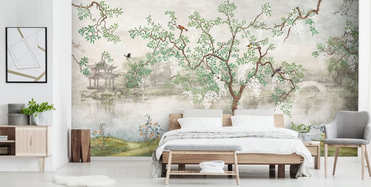 Pensiamo che questa bellissima carta da parati orientale starebbe benissimo in una camera da letto principale. Posiziona questa carta da parati con alberi dipinti sulla parete dietro la testiera del letto e dipingi le pareti in una tonalità di verde pastello o grigio. Scegliete un mix di mobili antichi e moderni per rispecchiare l'atmosfera vintage del murale con uccelli, ma non fate sentire la vostra casa troppo simile a un museo!