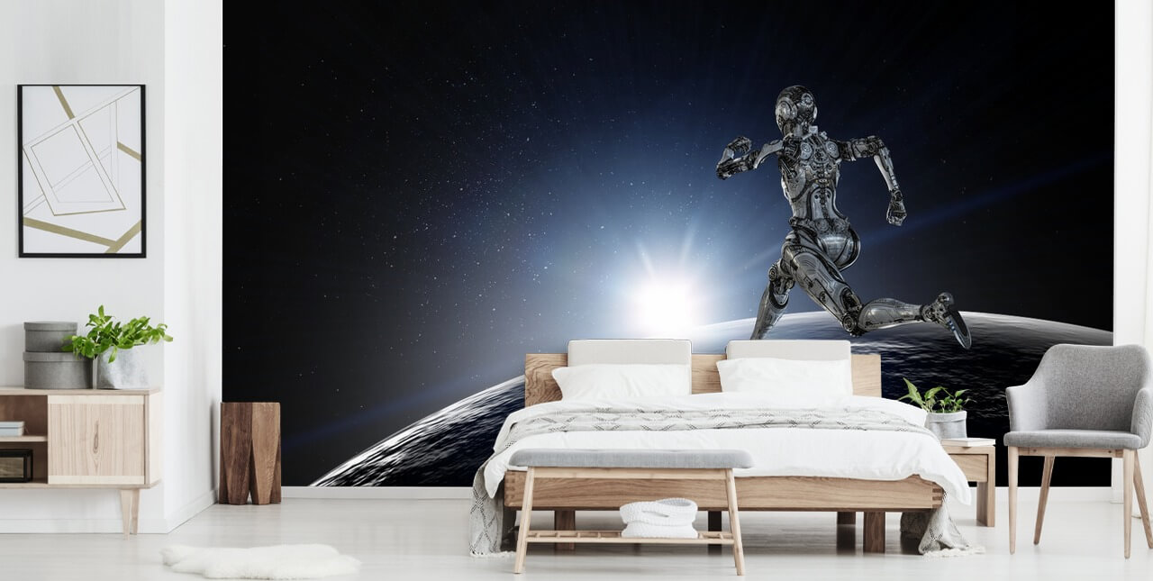 Crea un senso di meraviglia nella tua casa con questa carta da parati su misura Cyborg Marathon di Wallsauce.com.