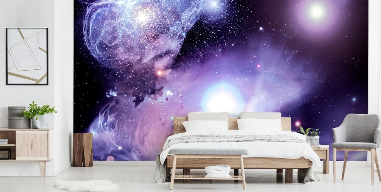 Per un impatto totale, ordinate questo murale di carta da parati spaziale a grandezza naturale della vostra parete. Abbinalo ad accessori blu e viola per continuare il tema e creare una stanza vivace.