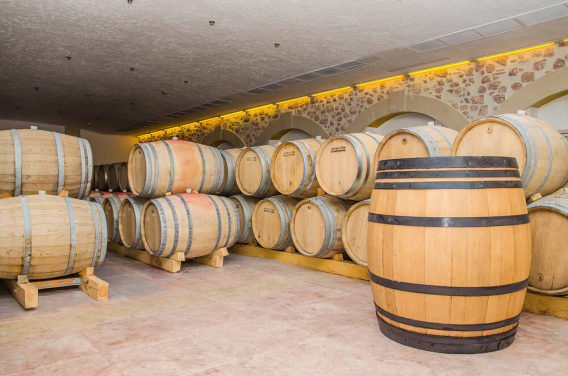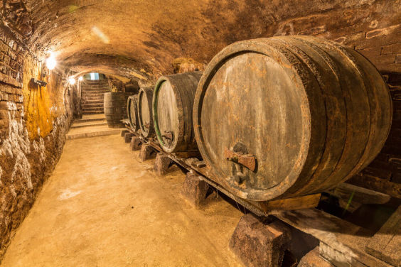 carta da parati murale marrone per cantine di vini chiamata Old Wine Barrels per ristoranti, cucine e cantine
