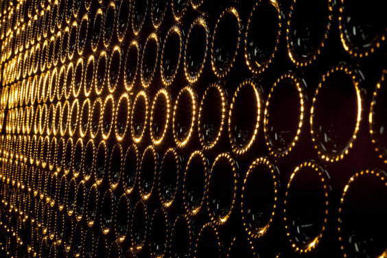 Carta da parati murale impilata con bottiglie di vino marrone scintillanti