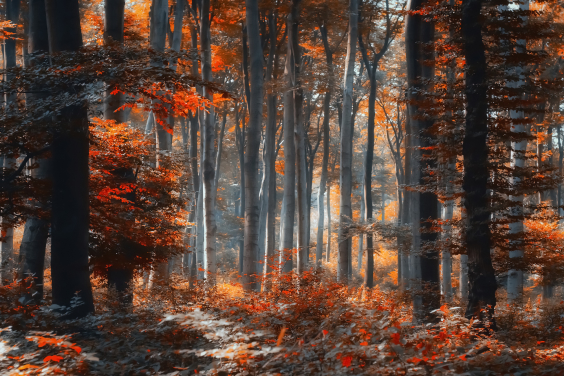 carta da parati murale personalizzabile con boschi chiamata Autumn Forest per uffici, salotti e bagni