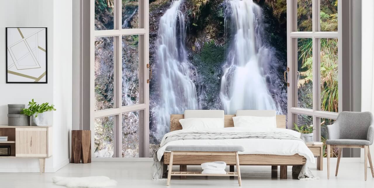 Avere una vista sulla cascata da casa ogni giorno con questa carta da parati su misura Hogarth Falls Window.