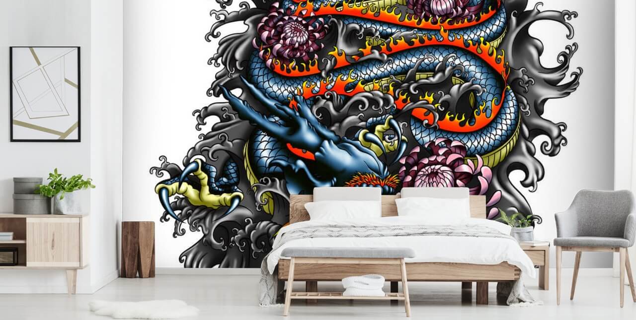 Installate questa carta da parati personalizzata Japanese Dragon. Disponibile in carta da parati da parete peel and stick o paste.