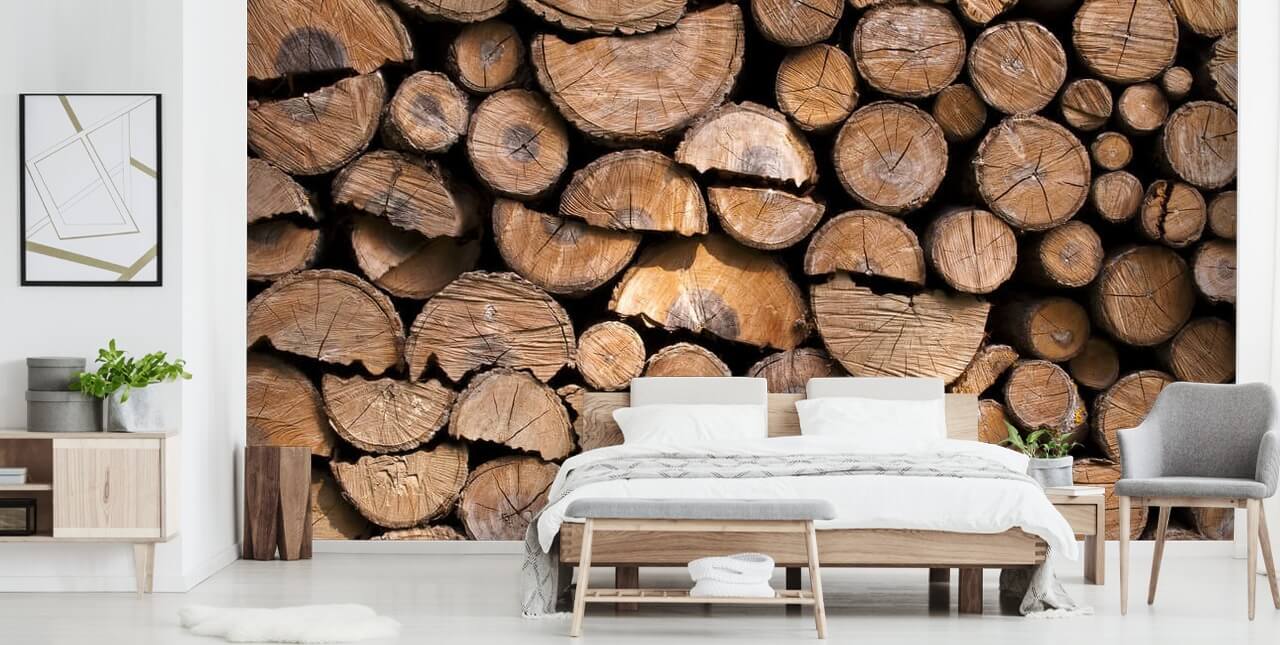 Adornate la vostra parete con questo murale su misura Log Pile Wall.