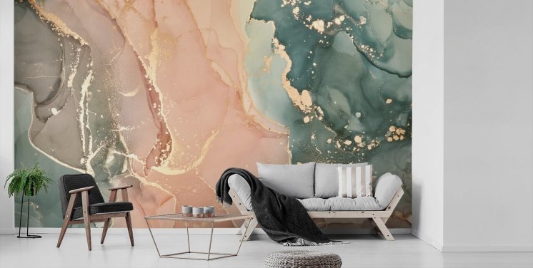 carta da parati murale personalizzata in marmo rosa e oro chiamata Dreamy Pastel and Gold per cucine
