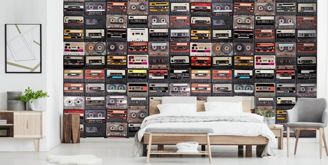 Trasforma la tua casa con questa carta da parati su misura Mixed Tapes.