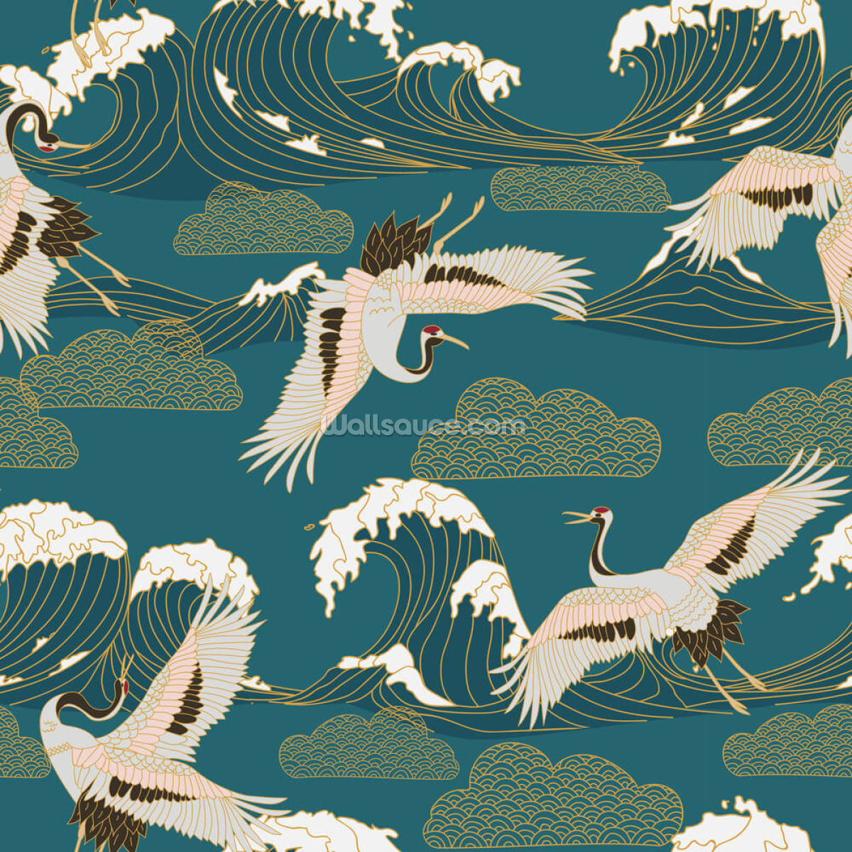 Portate un tocco orientale nella vostra casa con questa squisita carta da parati Ocean Cranes. Realizzato su misura per adattarsi perfettamente alla tua parete.