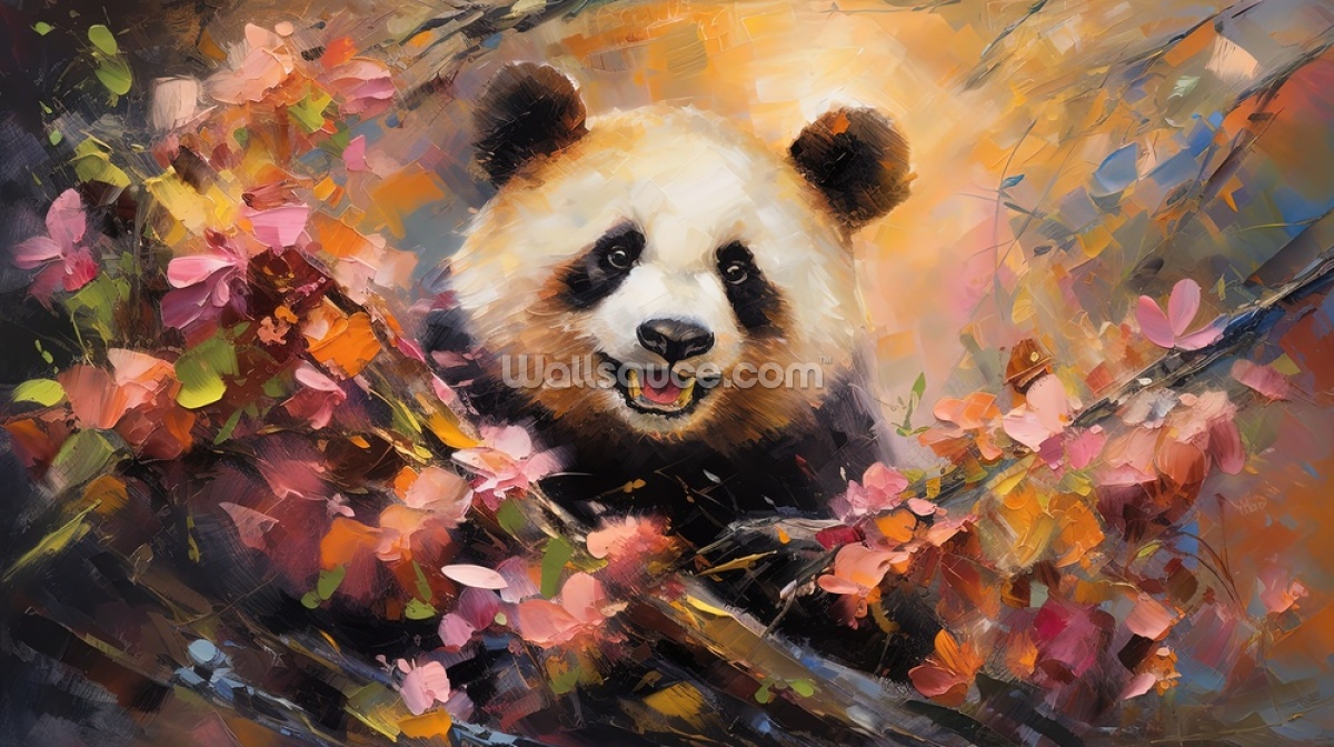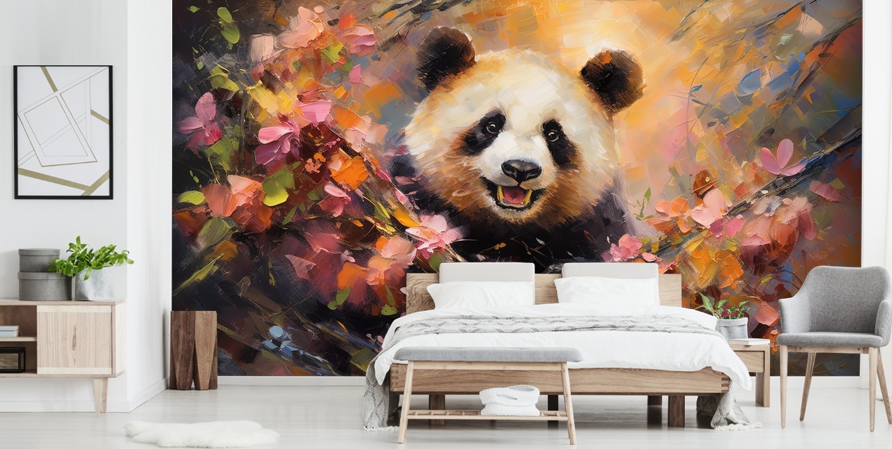 Decorazione murale Colorful Panda in Flower Blossom, realizzata su misura per adattarsi alla tua parete.