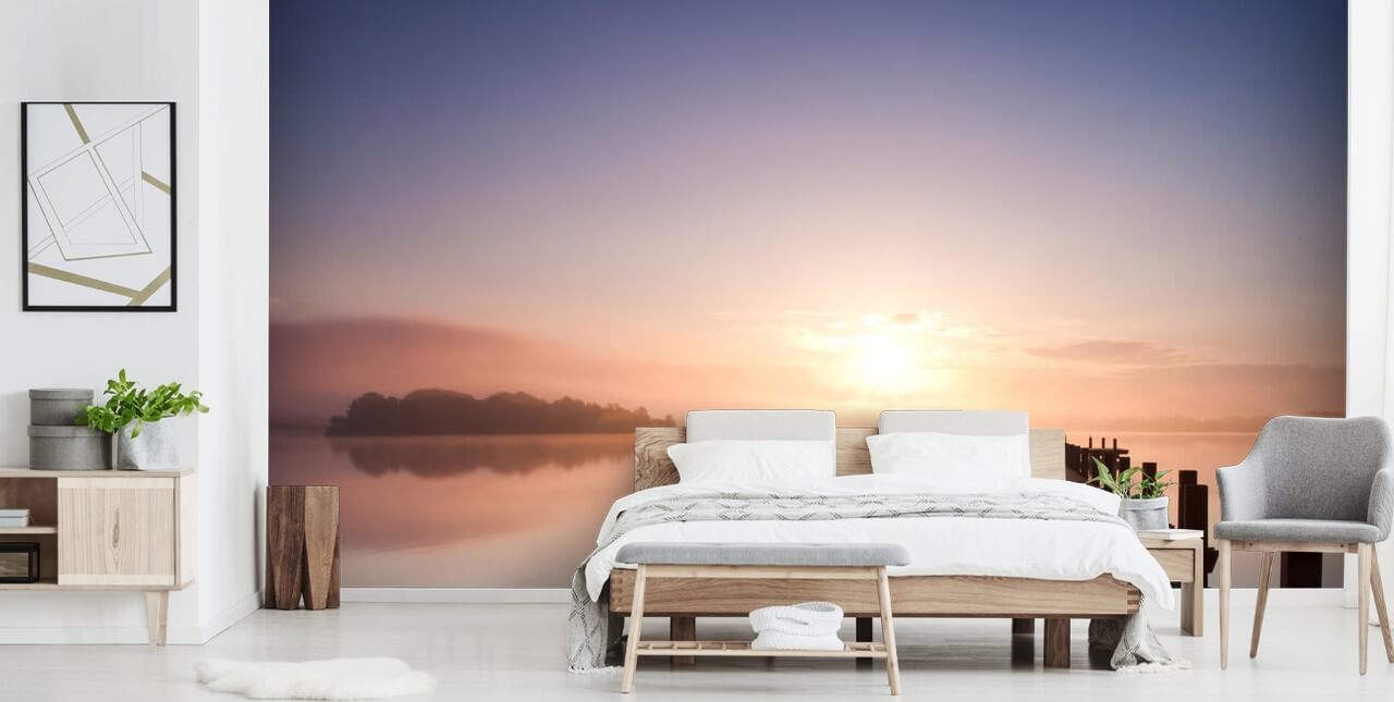 Quale posto migliore per installare questa bellissima carta da parati sul lago se non nella tua camera da letto? Invece di optare per pareti circostanti dipinte di bianco, perché non sfruttare al massimo i colori e dipingere le pareti di un rosa pastello o blu? Mantieni il resto del tuo arredamento semplice per non offuscare questa splendida immagine.
