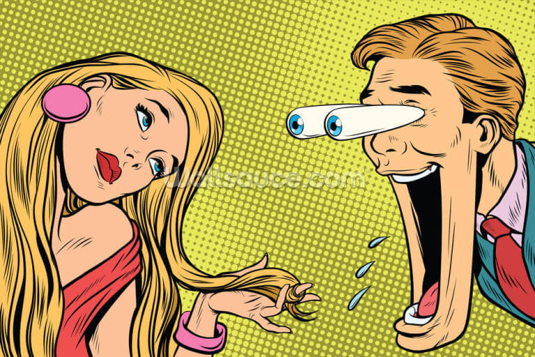 carta da parati retrò di un uomo che sussurra all'orecchio di una donna scioccata