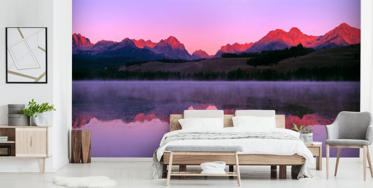 Porta colore e un senso della natura nella tua casa con questo bellissimo murale a parete Sawtooth Mountain Range. Con splendide tonalità di viola e rosa, questa splendida carta da parati al tramonto è la scelta perfetta per una carta da parati rilassante che gode di un tocco di colore!