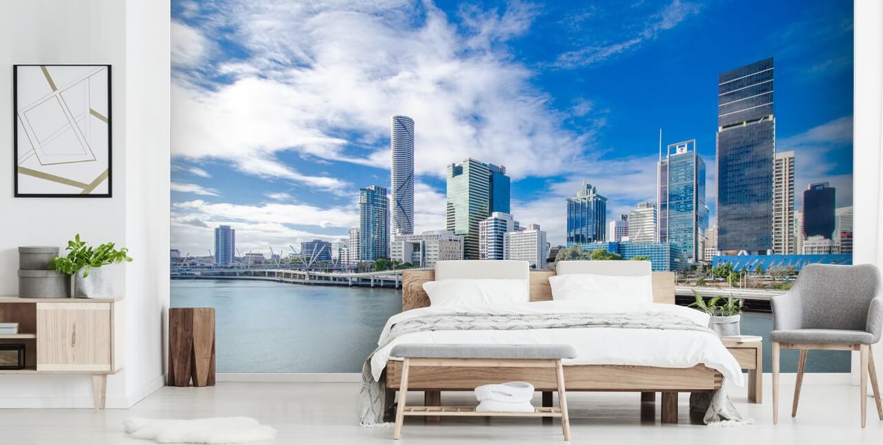 Splendida carta da parati murale Skyline Brisbane per la tua casa! Realizzato su misura per adattarsi alla parete.