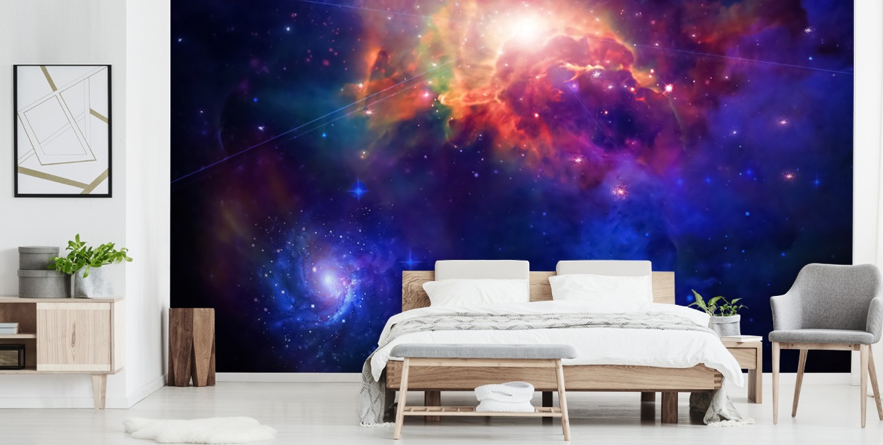 Installate questa carta da parati murale su misura Space nella vostra camera da letto per un sonno rilassante.
