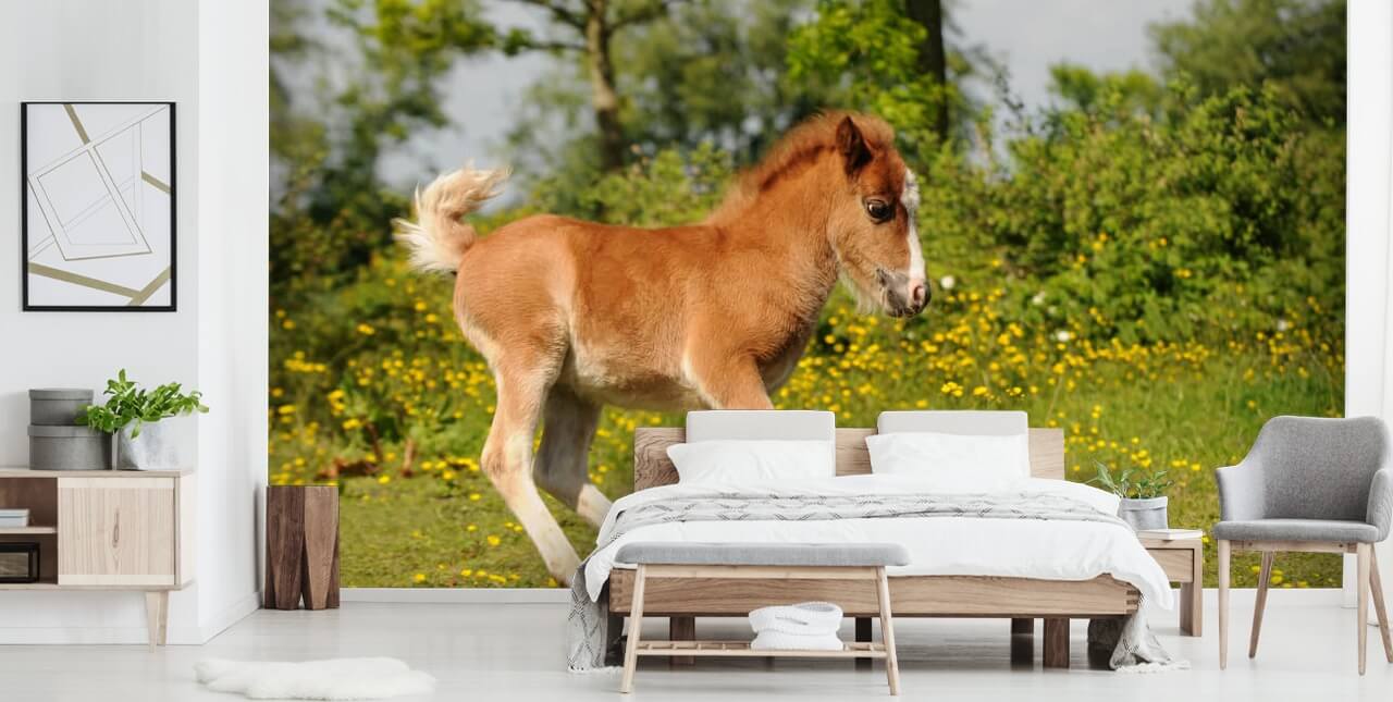 Un adorabile puledro! Installate questa carta da parati personalizzata Spring Foal per farvi sorridere ogni giorno.