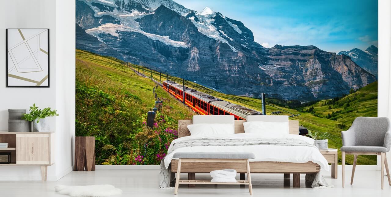 Sentiti come se stessi camminando sulle Alpi svizzere con questa bellissima carta da parati Switzerland Train a casa tua!