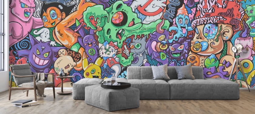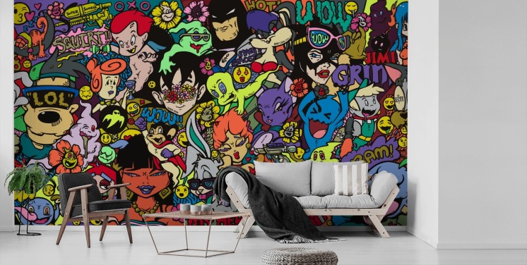 carta da parati murale multicolore personalizzabile con graffiti chiamata Graffiti Wall Art per la camera dei ragazzi