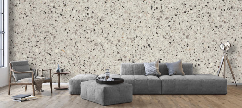 Carta da parati in terrazzo maculato grigio e bianco