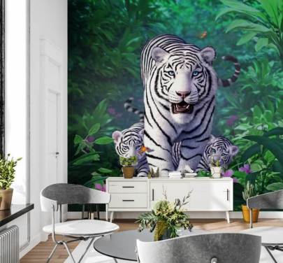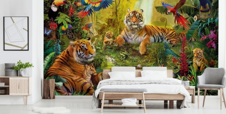 Dalle tigri fotografate allo stato brado alle simpatiche illustrazioni, abbiamo un'abbondanza di splendidi murales con tigri per la tua camera. Ideale per camere da letto e spazi abitativi, immortala questo bellissimo animale in via di estinzione nella tua casa