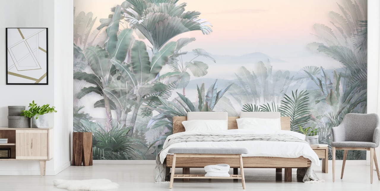 Trasforma la tua casa con uno splendido murale Tranquil Jungle di Wallsauce. È fatto su misura per le tue misure!