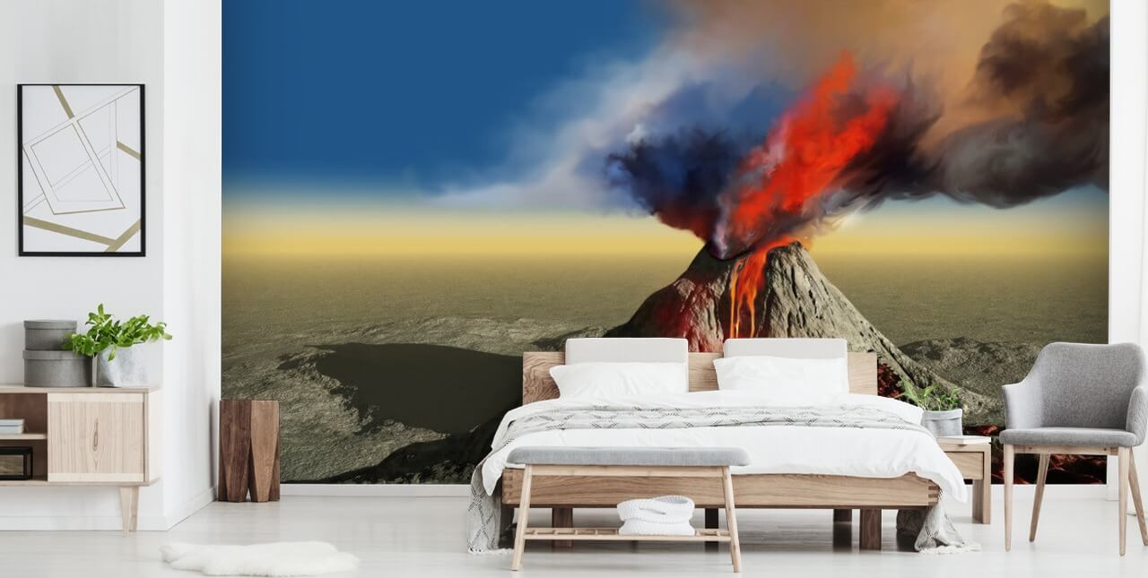 Senti il calore con questo murale di carta da parati su misura Volcano Smoke.