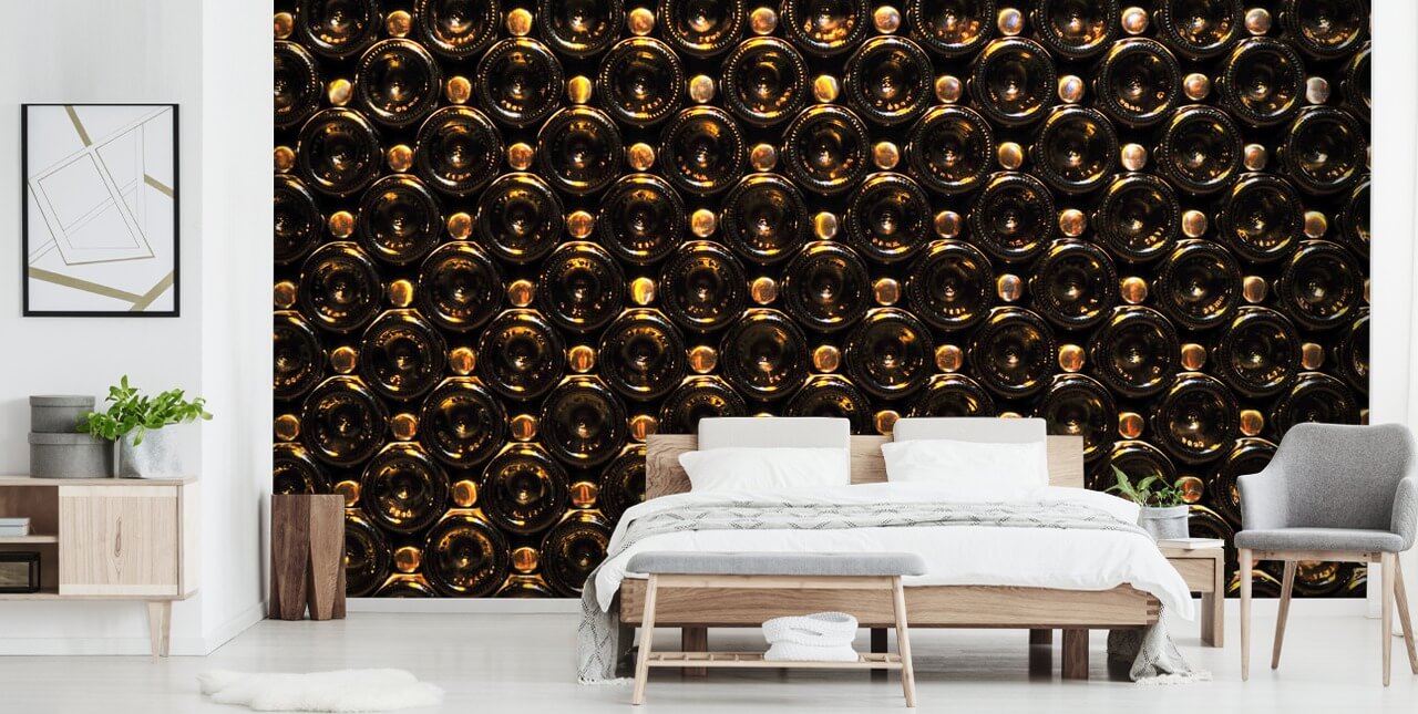 Adornate la vostra parete con questa carta da parati su misura Wine Bottle Wall.