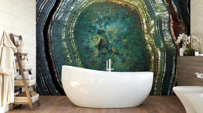 Decorazione murale con agata color smeraldo e oro di Lara