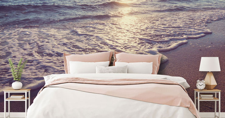 It’s not hard to understand why tranquil beach wallpapers are great for the bedroom. They are so calming and peaceful that you’ll be wanting to shut your eyes as soon as you see the mural (in a good way)! Install this beautiful beach wallpaper behind your headboard and choose a range of white and pastel pink décor pieces to mirror the relaxing shades.