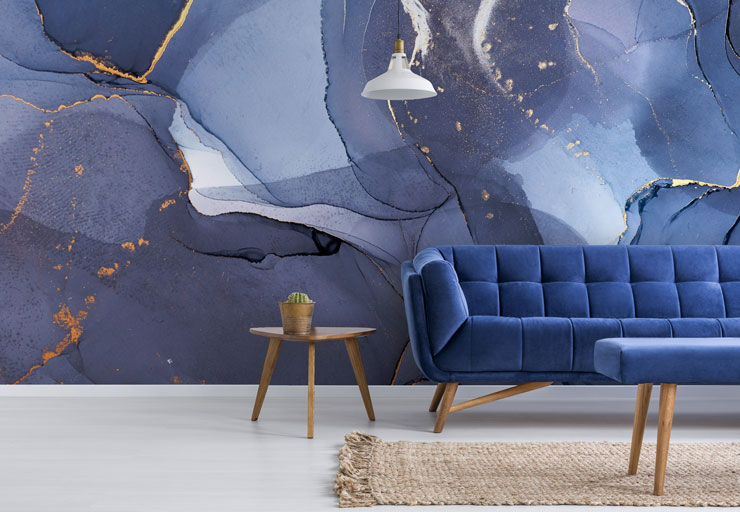 Blauwe aquarel muurschildering