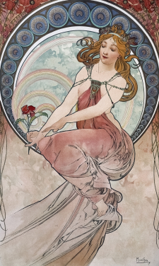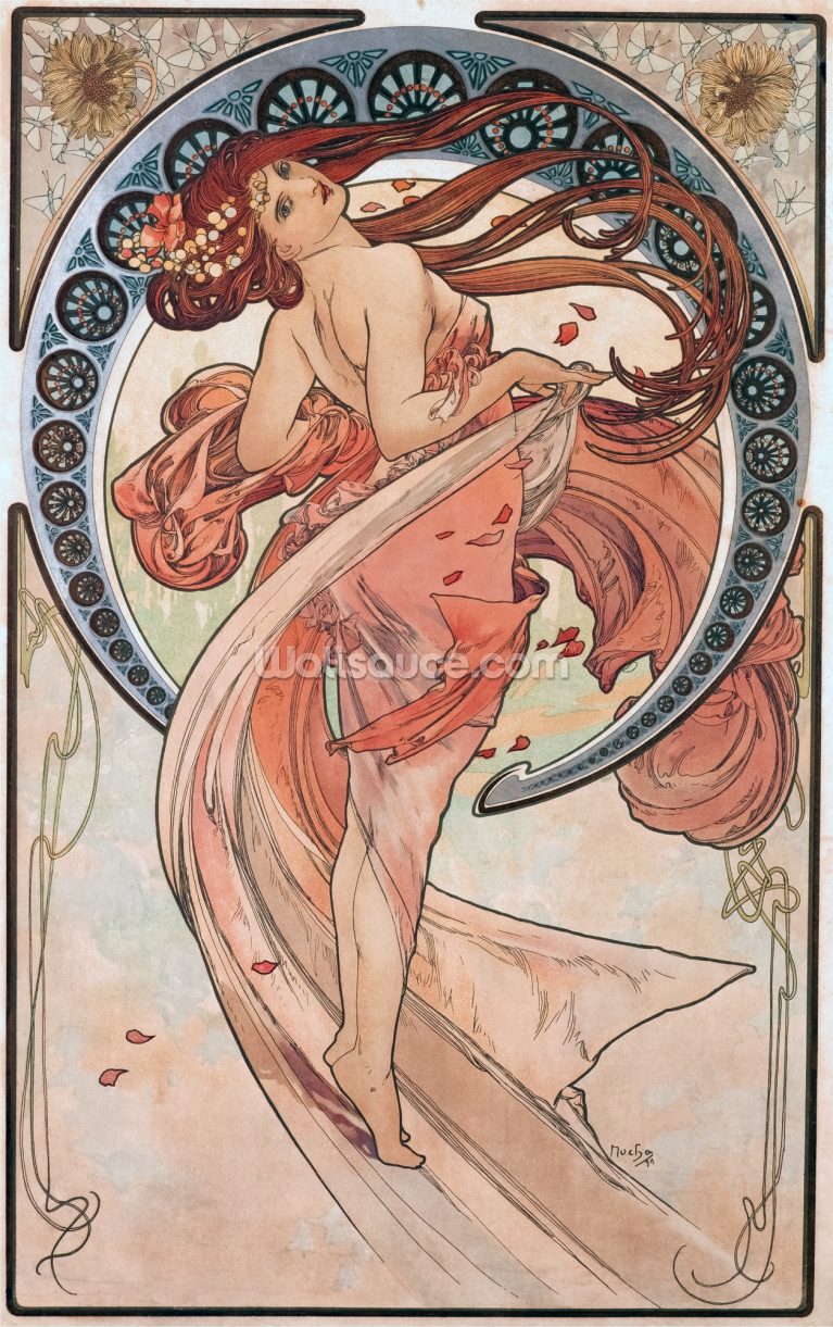 fine art wallpaper mural called Cycles Perfecta by Alphonse Mucha for living rooms and bedrooms