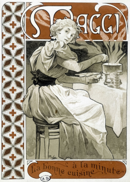 art nouveau muurschildering genaamd Cognac Bisquit van Alphonse Mucha voor woon- en slaapkamers