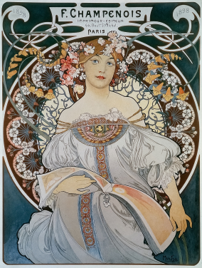 kunstmuurschildering genaamd F. Champenois Imprimeur-Editeur van Alphonse Mucha