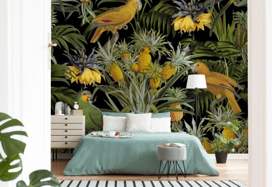 Tropische vogels in een jungle muurschildering van Andrea Haase