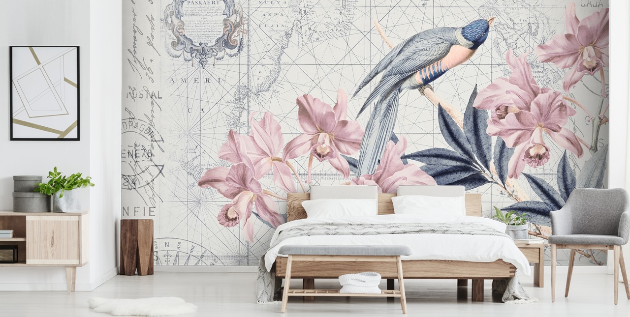 De vogelvlucht van ontdekking - Bloemen behang