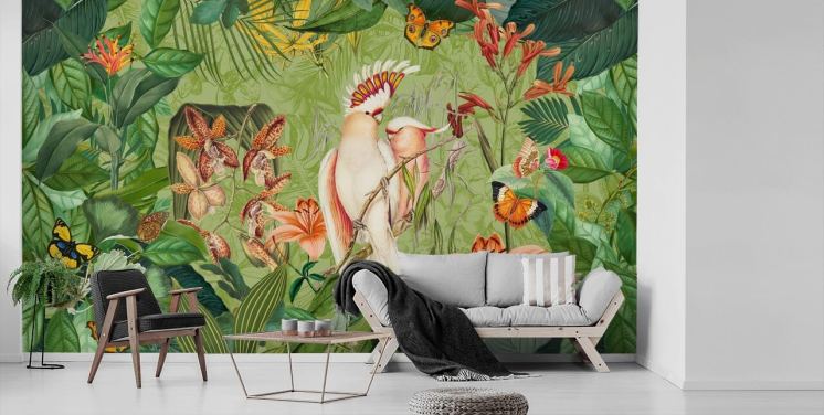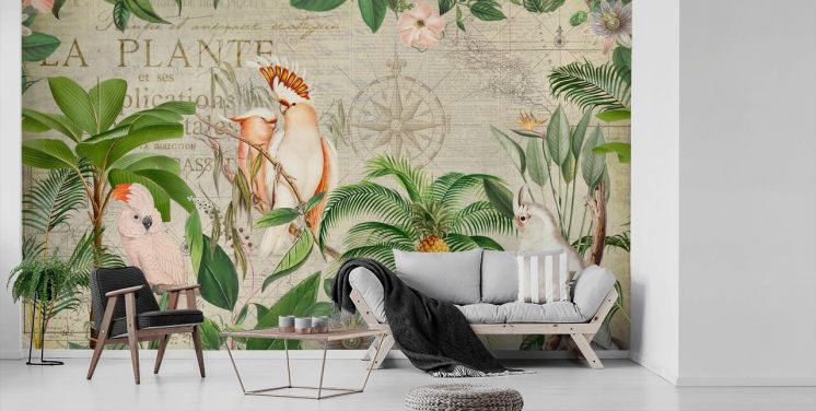 vintage jungle met vogelbehang
