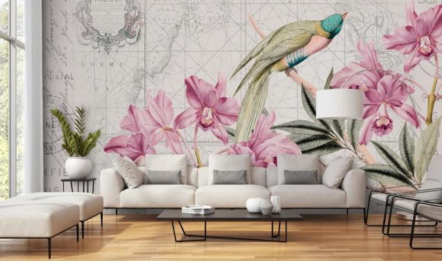 Vogelkooi behang muurschildering