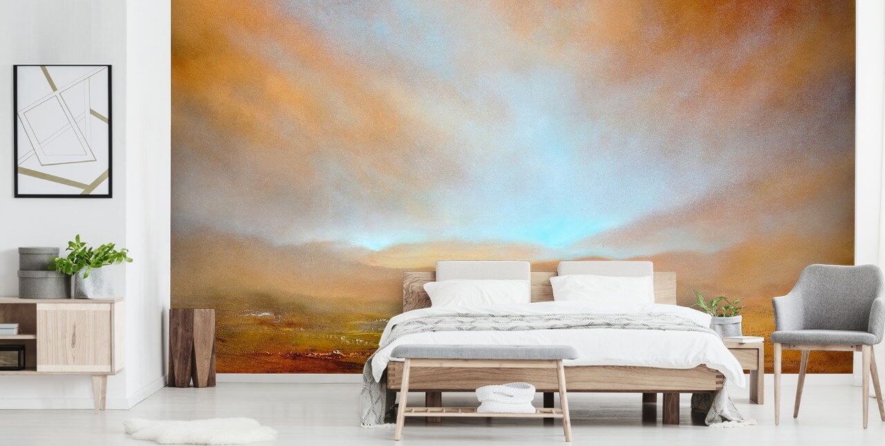 Koop dit ontspannende Autumn Light-behang voor in huis. Op maat gemaakt om aan uw muur te passen en bedrukt op hoogwaardige behangmaterialen.